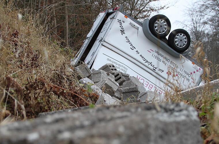 Der Anhänger landete auf dem Dach. "Der ist Schrott", stellt Morell fest und schätzt den Schaden auf circa 5000 Euro. Am Pkw selbst entstand kein Schaden. Auch der Fahrer, der das Baumaterial privat transportierte, ist wohl auf.