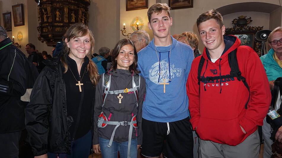 Wie ergreifend das gemeinsame Singen und Beten in der Klosterkirche war, war so manchem Gesicht anzusehen. Tränen flossen bei der Bitte an die Gottesmutter: "Segne du, Maria, alle die mir lieb." Auch die 19-jährige Judith Keller war überwältigt. "Für mich ist es die erste Wallfahrt von Würzburg zum Kreuzberg. Es ist überwältigend, hier in die Kirche zu kommen, am Ziel wirklich angekommen zu sein." Und Robert Seifert, ebenfalls 19 Jahre, ergänzte: "Die Stimmung und die Atmosphäre in der Kirche, das ist unglaublich." Er ist bereits zum vierten Mal zum Kreuzberg gepilgert, ebenso wie Annelie Hornung (19). "Besonders wenn alle gemeinsam singen, ist es richtiges Gänsehautfeeling", sagte Julian Bedner (18), der bereits als Kind mit seinem Vater zum Kreuzberg ging.