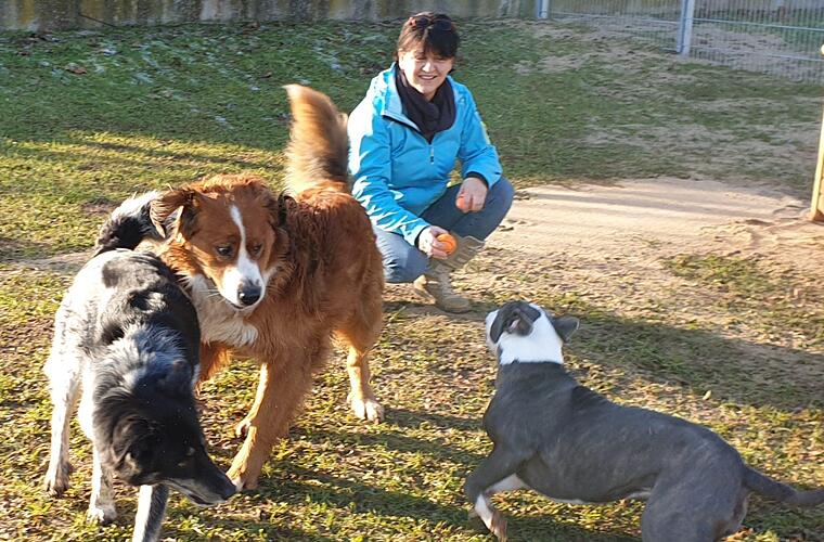 Platz ist für zehn große Hunde, wenn kleinere dabei sind auch für 15. Draußen gibt es neben dem Auslauf auch einen Trainingsplatz und im Sommer wird im Activity-Bereich ein Planschbecken aufgebaut. Vor der Aufnahme gibt es einen Schnuppertermin für neue Hunde zum Kennenlernen. Aufgenommen werden alle Rassen, "ich habe keine Angst vor Hunden", sagt Lissi Schäfer. Ins Bett - und diese Anfrage gab es wirklich - nimmt sie aber keinen mit.
