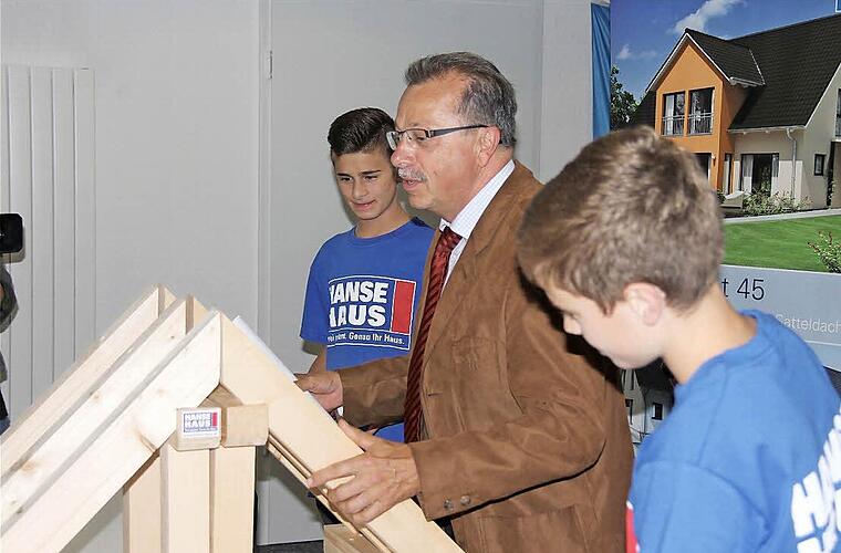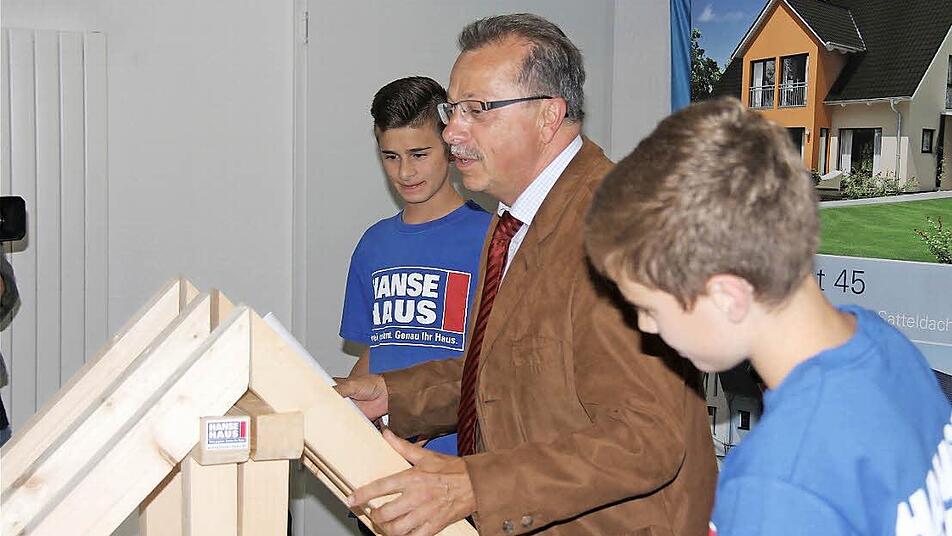 Ebenso wie Tobias ist sein Klassenkamerad Joshua Kühnlein von der Materie Holz angetan. "Ich bin stolz auf unseren Dachstuhl", sagte Joshua bei der Präsentation des gemeinsam in mühsamer Handarbeit geschaffenen Werks. Im Bereich Elektronik war der Schüler Niklas Weigand als Praktikant tätig. "Ich habe eine Wechselschaltung für das elektrische Licht eingebaut", sagte er und zeigte sein Werk. Was die drei Praktikanten sehr begeistert, ist ihr Vorvertrag für Ausbildungsstellen bei Hanse-Haus, den sie jetzt schon in der Tasche haben.