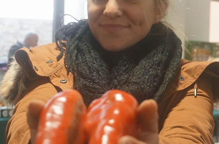 Es ist regnerisch und kalt am Samstagmorgen. Wer nicht unbedingt seine Einkäufe erledigen muss, bleibt lieber zuhause. "Da ist es doch eine Wohltat, in die gemütliche Markthalle zu gehen und dort in aller Ruhe einzukaufen", sagt Maria Schneider. Sie gehört zu den Stammkunden des Bauernmarktes, der vor allem von Einheimischen besucht wird. An elf Ständen bieten die Landwirte ihre Produkte an. "Da weiß man, wo es herkommt", meint Schneider. Zudem schätzt sie das persönliche Gespräch, kennt man sich doch seit vielen Jahren.