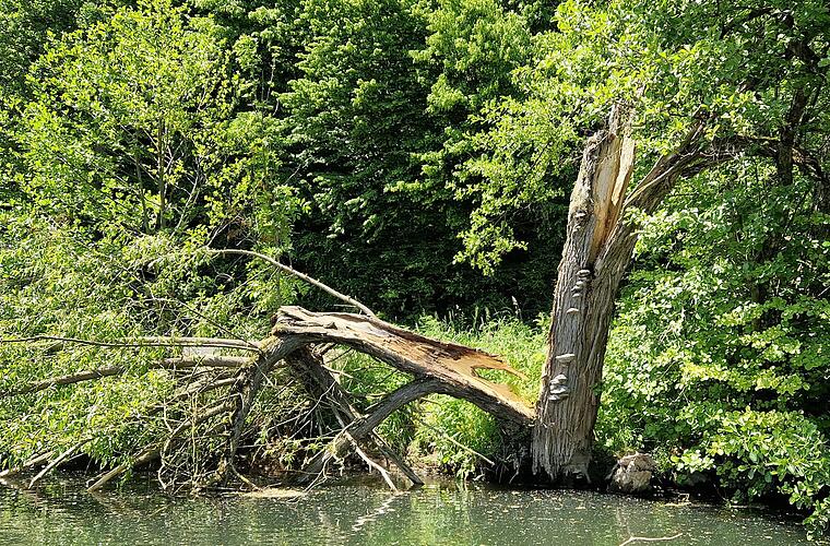 Wie das Landratsamt Bad Kissingen erklärt, sind also weniger die Bäume, die bereits im Gewässer treiben, das Problem, denn diese entfernt das Wasserwirtschaftsamt Bad Kissingen zeitnah. „Das eigentliche Risiko geht von den Bäumen aus, die noch stehen, aber bereits tot sind und damit jederzeit umfallen können“, erklärt Franziska Heindel vom Landratsamt. Allein in den vergangenen zwei Wochen sind fünf weitere Bäume in die Saale gestürzt und dort quer zur Flussrichtung liegen geblieben.