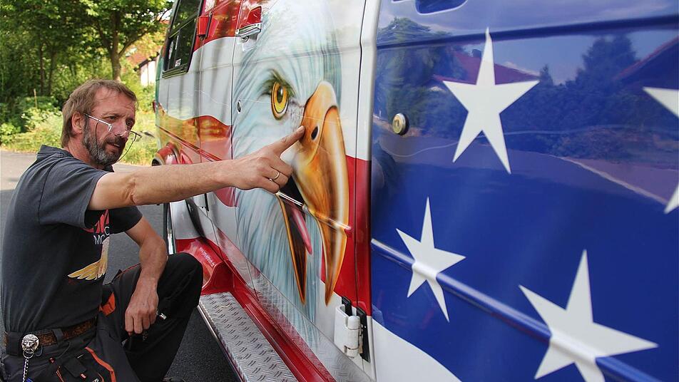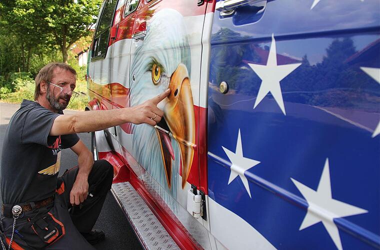 Herzblut floss. Denn mit Liebe hatte Reimer vor rund zehn Jahren seinen Chevrolet-Van stilgerecht auf den U.S.-Look getrimmt. Nicht nur im Wageninnern mit vielen Details sondern auch außen für teures Geld. Der Lack mit den aufwändigen mehrschichtigen Airbrusch-Malereien war nicht gerade für ein Taschengeld zu haben. "Da habe ich lange sparen müssen und ich bin ganz besonders stolz darauf", bekennt Reimer. Denn solche von Künstlerhand gefertigten Bilder seien Unikate und keine billigen Abziehbilder.