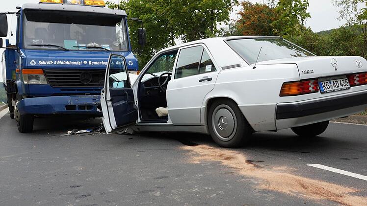Die junge Fahrerin wurde bei dem Unfall im Schulterbereich verletzt, war aber ansprechbar. Sie wurde in das Hammelburger Krankenhaus gebracht. Die Feuerwehr aus Thulba sicherte die Unfallstelle. Sie war mit fünf Mann ausgerückt. Die Feuerwehrleute mussten vor allem das ausgelaufene Kühlmittel abbinden, das den leichten Abhang Richtung Ortsmitte floss. Der Pkw hat nach der ersten Einschätzung der Polizei Totalschaden. Der Laster, das Transportfahrzeug eines Schrott- und Metallhändlers, wurde bei dem Zusammenstoß vor allem an der linken Frontpartie beschädigt.