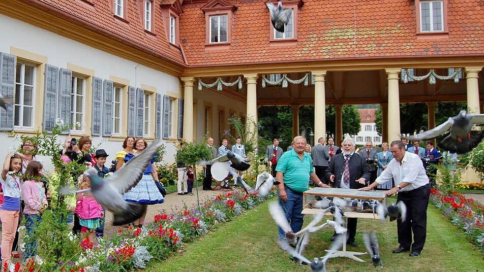 Ein weiterer Programmhöhepunkt war das Auflassen von 80 Brieftauben, die Züchter Paul Beck in den Himmel steigen ließ. Nach kurzer Orientierung dürften die Flieger, die sonst Strecken bis zu 1000 Kilometer