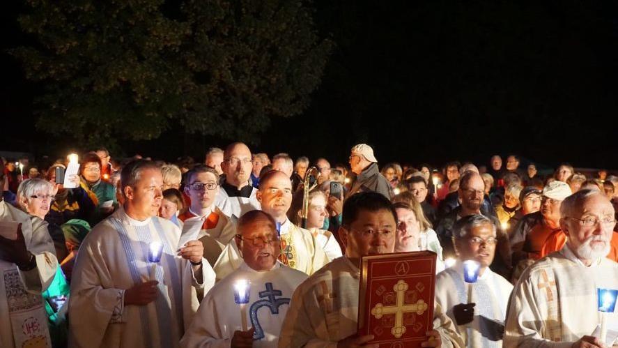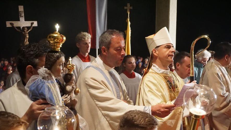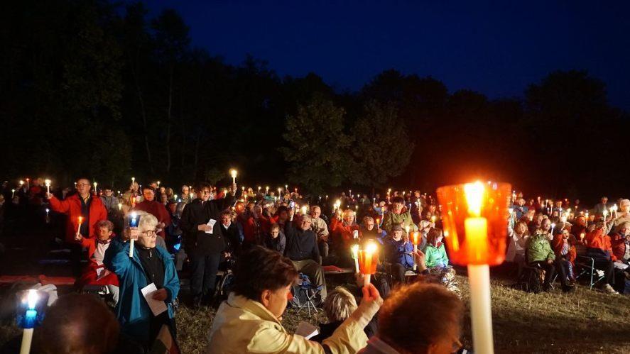 Bischof Dr. Franz Jung war von der Vigilfeier auf dem Maria Ehrenberg begeistert und beeindruckt. Im Anschluss an die abendliche Liturgie, zu der das Rosenkranzgebet, eine Lichterprozession und die Eucharistiefeier gehörten, sagte er gegenüber unserer Zeitung: "Wunderbar. Wunderschön. Es ist sehr stimmungsvoll und so viele Menschen sind gekommen. Es ist etwas ganz besonderes, diesen Marienfest am Abend zu feiern."