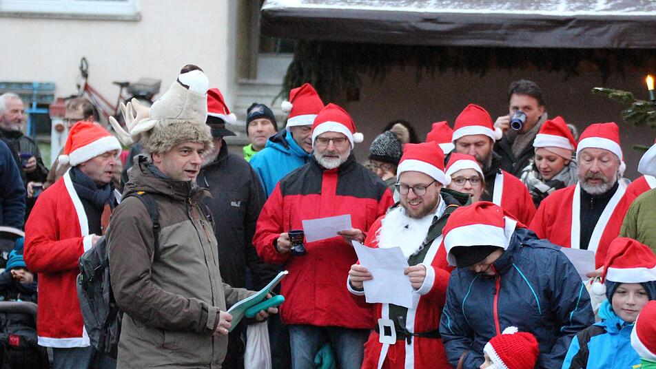 Wildflecken, mit dem Wildfleckener Musikzug gewettet, dass dieser es nicht schafft, 50 Weihnachtsmänner zusammen für ein Ständchen auf dem Rathausplatz zu versammeln.