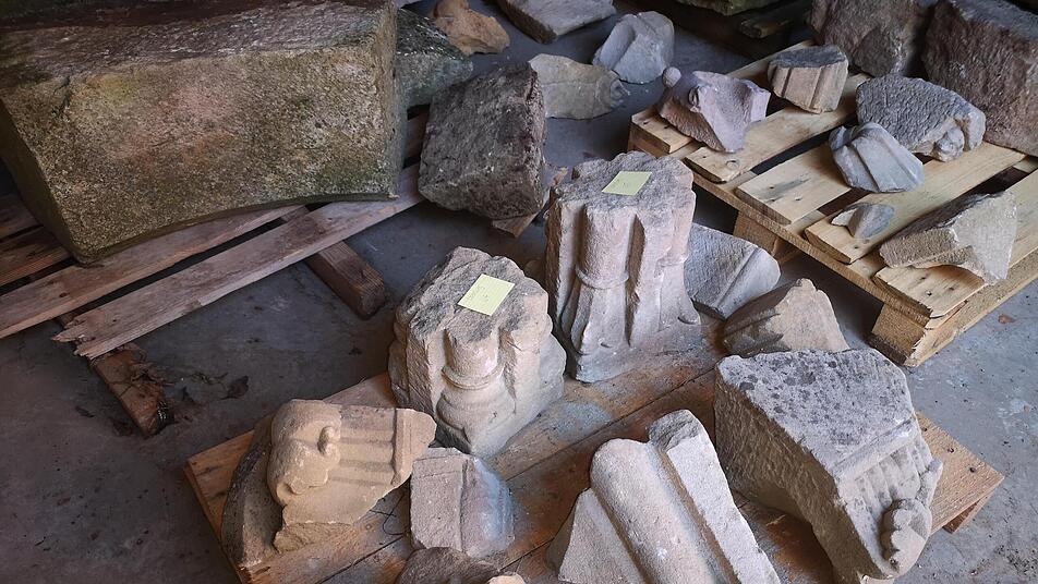 Hochwertige Architektur sei bei der Ausgrabung zu Tage gekommen, reich verzierte Säulenteile, kunstvoll behauene Steine. Das Lieblingsstück von Joachim Zeune ist ein Teil einer Kaminkonsole, mit der biblischen Darstellung des Daniels in der Löwengrube. "Eine hervorragende Bauplastik, es wird das schönste Stück der Ausstellung." In der Remise lagert die Stadt Bischofsheim neben den historischen Steinen der Osterburg auch einige Wappentafeln der ehemaligen Stadtburg, unter anderem ein Julius-Echter-Wappen. Diese Tafeln, die in direktem Zusammenhang mit Bischofsheims Geschichte stehen, werden in der Ausstellung ebenfalls einen Platz bekommen. Geplant sei, die Exponate in Vitrinen unter zu bringen, ein Bildschirm mit Videos und Bildern, Informationstafeln sollen die Ausstellung ergänzen. Zugleich sollen auf der Osterburg neue Informationstafeln aufgestellt werden, die auf die Ausstellung im Rentamt verweisen. Auf diese Weise soll eine Querverbindung zwischen Ausstellung und Burganlage erzielt werden, erklärt Bischofsheims Bürgermeister Georg Seiffert.