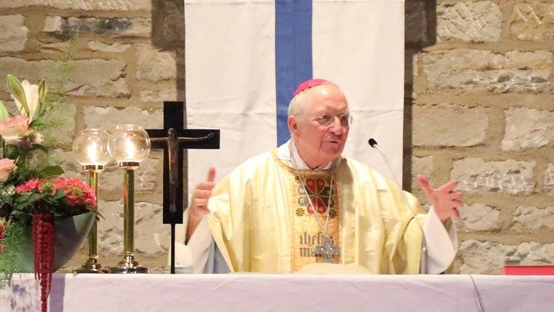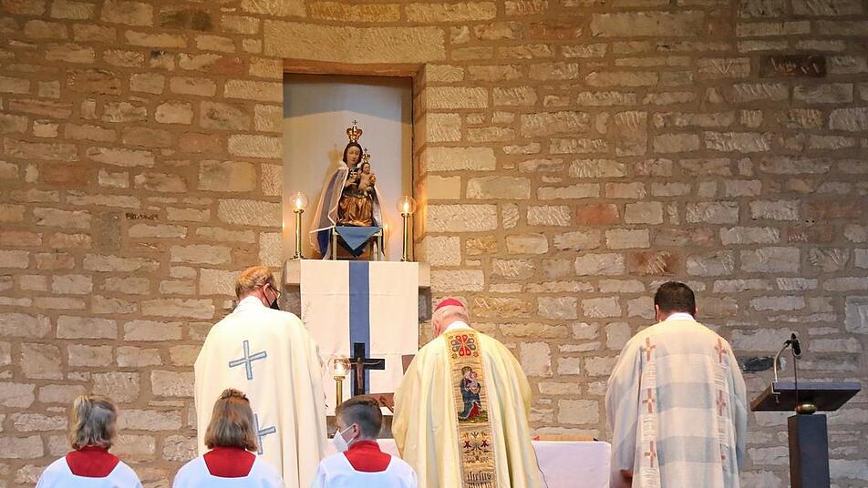 Weihbischof Ulrich Boom feiert am Maria Ehrenberg einen Pontifikalgottesdienst am Vorabend des Hochfestes Mariä Himmelfahrt. Die Feierlichkeiten zum Jubiläum "500 Jahre Wallfahrt" wurden aber coronabedingt auf 2022 verschoben
