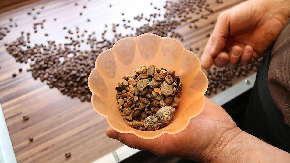 "Bei der Kaffee-Industrie geht es weniger schonend zu", kommentierte Rainer Bühner. Da würde aus Fertigungsgründen in einem Bruchteil dieser Zeit bei extrem hohen Temperaturen geröstet. Sorgsame Handarbeit ist stets angesagt, um nach dem Rösten die schlechten Bohnen auszusortieren.