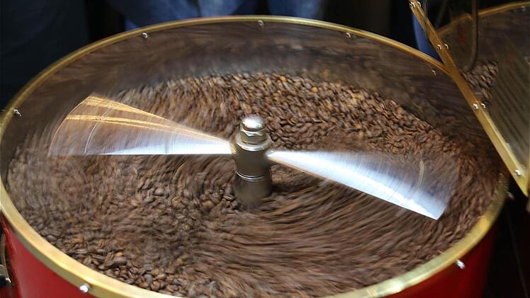 Die wurde jetzt in Gang gesetzt, um den Bad Brückenauer Stadtkaffee mit Bohnen aus Indonesien, Sumatra und Mandheling herzustellen. Aus den fünf Kilo heller Bohnen im Urzustand wurden nach rund einer halben Stunde etwa vier Kilo dunkle und aromatisch duftende Kaffeebohnen. Denn während des Röstvorgangs werden diese Bohnen auf knapp 200 Grad erhitzt und büßen durch Verdampfen ein Fünftel ihres Gewichtes ein. Während des Trocknens verlieren die Bohnen auch ihre Spelzen, die im Innern der Röstmaschine abgesaugt werden.