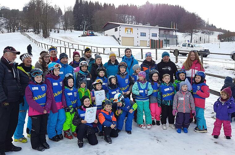 Zum Abschluss des Kurses gab es vom stellvertretenden Vorsitzenden Michael Geck Urkunden für jedes Kind als Erinnerung an die Teilnehme beim Skikurs. Vorgestellt wurden auch die neuen Skikurs-Leibchen, die mit Hilfe von Familie Adrian von den Arnsbergliften angeschafft wurden. Mit Logos und Aufschrift versehen sind die Skikurskinder künftig bei ihren Kursen für alle gut sichtbar. Der Kurs für die Fortgeschrittenen konnte bislang aufgrund der Schneebedingungen nicht stattfinden.