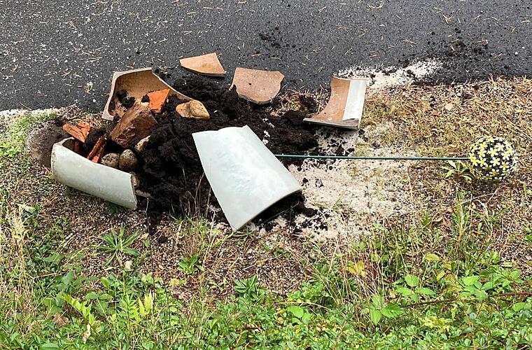 "Das ist als Anwohner ein wirklich ungutes Gefühl", berichtet Rieke Tretter-Hufer der Redaktion. Ein großer Blumenkübel vor ihrem Haus liegt zertrümmert am Boden. Ein Nachbar habe sich an einer herausgerissenen Latte einen Platten geholt. Der Nagel habe nach oben geschaut. Tretter-Hufer ärgert das, denn bereits Mitte Juli sei schon einmal ein Blumenkübel von Vandalen zerstört worden.