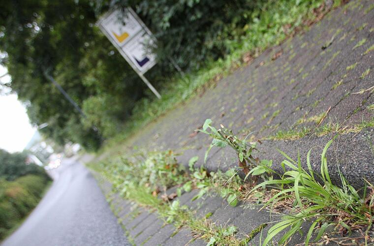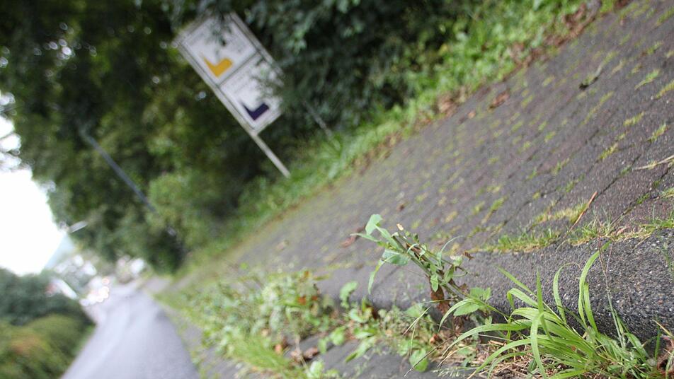 Es ist nur ein kurzer Abschnitt, der ins Auge springt, doch er sieht nicht sehr ansehnlich aus. Grün wuchert auf dem Gehsteig und am Straßenrand zwischen dem Parkplatz vom Hotel Mühle bis zur Einfahrt zum ehemaligen Haus Waldenfels, das zwischenzeitlich das Bayerische Rote Kreuz nutzt. Die Büsche haben sich ebenfalls ausgebreitet.
