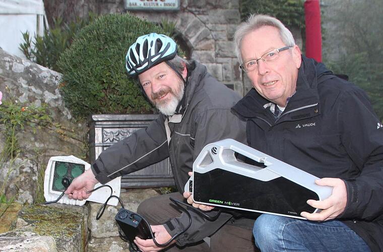 Sie wiegt 4,4 Kilogramm, aber ohne die Batterie an seinem Fahrrad würden Erwin Miller seine Söhne glatt davonfahren. "Das macht schon Sinn", sagt der Stadtrat (Freie Bürger), "gerade bei uns in der Rhön." Er selbst fährt schon eine ganze Weile mit dem unterstützenden Motor am Rad. "Ich kenne in Bad Brückenau viele, die schon E-Bike fahren", sagt 2. Bürgermeister Jürgen Pfister (PWG). Da wird's höchste Zeit, dass Bad Brückenau bei E-Bikes nachzieht.