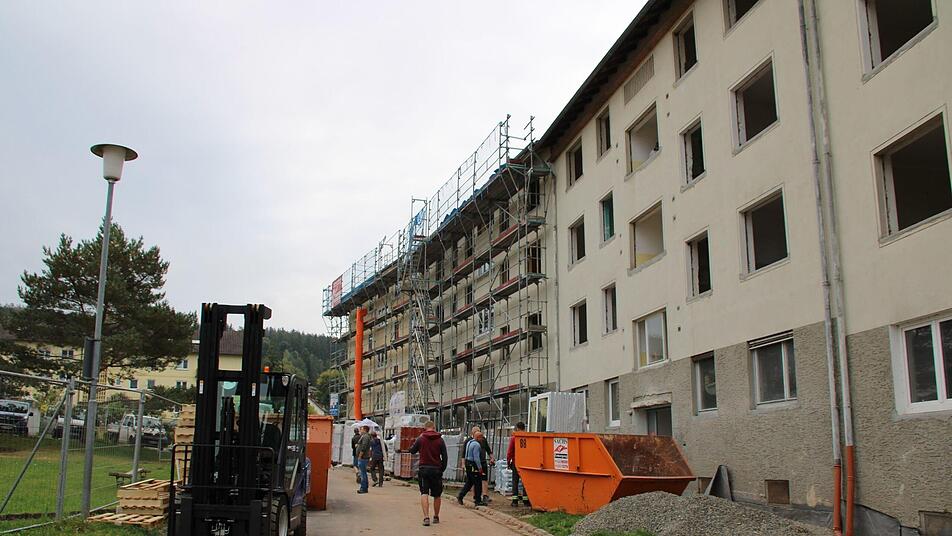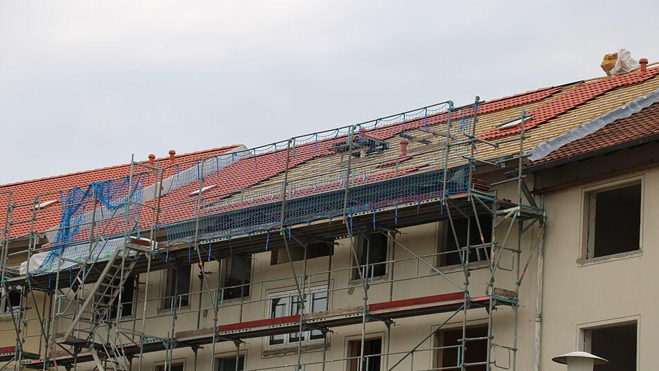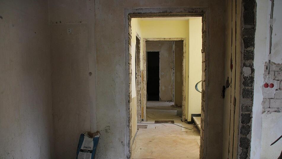 Seit Juli laufen die Arbeiten, sagt Walis. Das Gebäude sei zunächst entrümpelt worden. Die Vormieter hätten etliche Gegenstände auf dem Gelände und auch in den Wohnungen zurückgelassen. Mit Öl heizten die Mieter der Baugenossenschaft noch. "Die Kamine wurden alle entfernt. Das macht viel aus", sagt er in Blick darauf, dass der gewohnte Anblick der Schornsteine nun verschwunden ist.