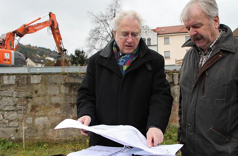 "Zunächst wird die Mauer zwischen der oberen und der unteren Terasse erhöht", erklärt Dag Schröder, der Architekt. Dazu musste ein Teil der Parkplätze abgesperrt werden. "Wir haben aber 14 Ausweichparkplätze geschaffen", informiert Karl Heinz Weismantel vom städtischen Bauamt. Diese liegen auf dem unteren der drei Parkplätze, am Abzweig zum Schwaneneck.