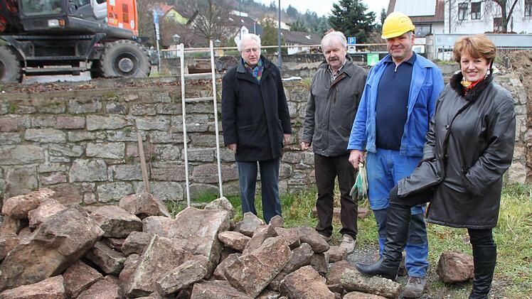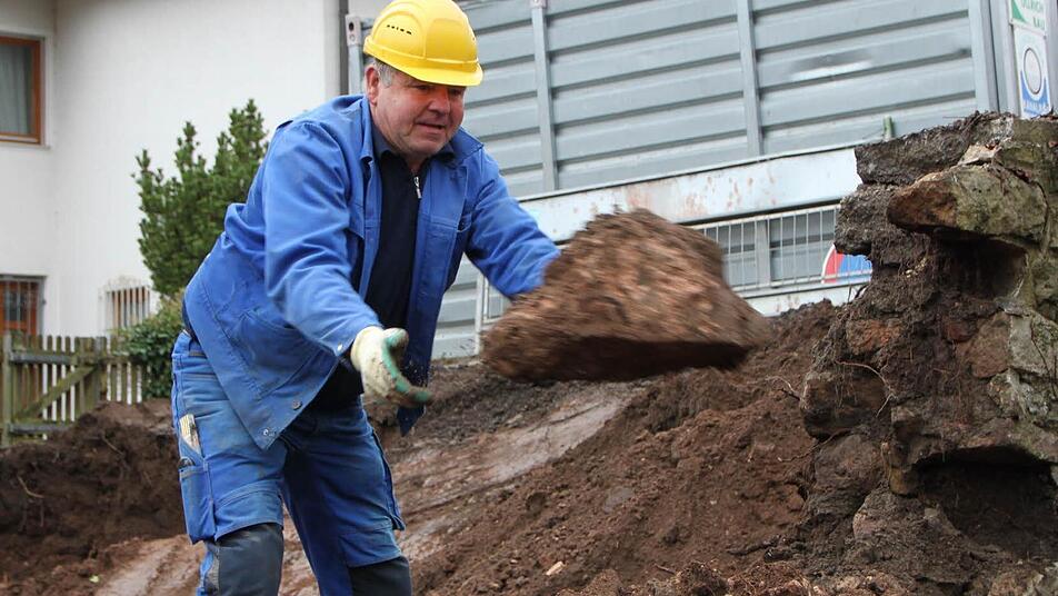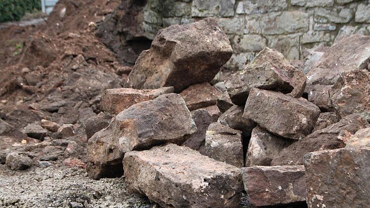 Mit Schwung wirft Reinhold Rathgeber einen Stein nach dem anderen auf einen Haufen. "Die Sandsteine werden gereinigt und dann wieder gesetzt", erklärt der Polier der Baufirma Ullrich aus Elfershausen. Seit Mittwoch arbeiten Bauarbeiter auf den Parkplätzen an der Obermang. Bevor der Rhöner Winter endgültig zuschlägt, wollen sie so viel wie möglich schaffen.