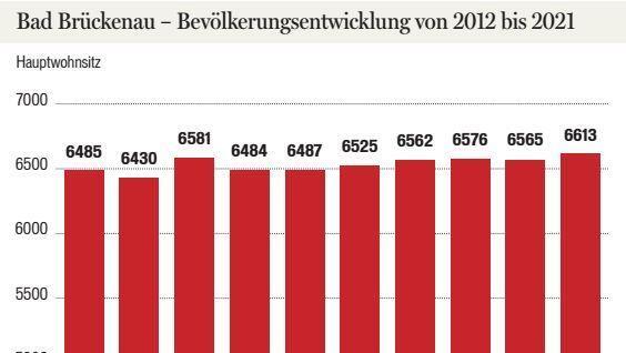 Insgesamt nimmt die Bevölkerung minimal zu. 6613 Menschen (nur Hauptwohnsitz) lebten Ende 2021 in Bad Brückenau mit den fünf Stadtteilen. 13,7 Prozent davon haben einen ausländischen Pass. Im Jahr davor, Ende 2020, waren es 6565 Einwohner im gesamten Stadtgebiet.