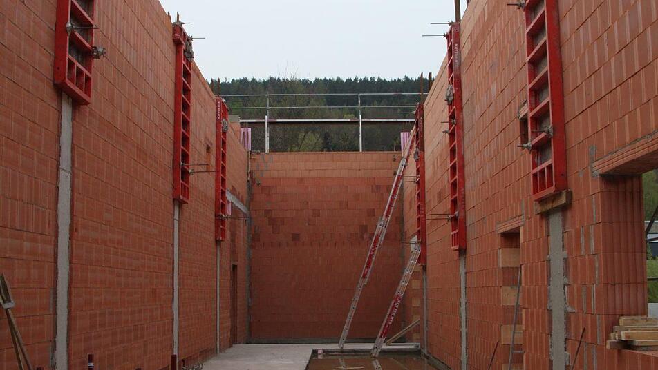 Nun aber, da der Frühling gekommen ist, reibt sich der sporadische Beobachter die Augen: Da steht der Rohbau schon, die Wände sind hochgezogen, die letzten Dachbinder, die den Dachstuhl tragen, wurden in der vergangenen Woche geliefert. Es geht voran auf der Baustelle. "Im Moment werden Stützen und Überzüge eingeschalt, heute Nachmittag wird betoniert", berichtet Polier Frank Neduck von der Firma "Kutter HTS" aus Helbra im Vorharz. Seit Oktober ist er auf der Baustelle, die lange Winterpause im Januar und Februar nicht mitgerechnet.
