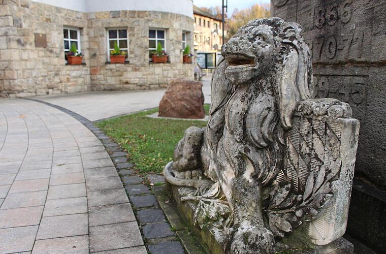 Das Gedenk-Monument am Alten Rathaus mit den vier Namenstafeln der beiden Weltkriege - und eingemeißelt auf der Rückseite der vorhergegangenen Kriege in den Jahren 1866 sowie von 1870-71 - wurde ursprünglich von Karl Heidelmeier und den Reservisten initiiert. "Das ist echt gelungen und symmetrisch, deshalb war ein passender Platz für den Freundschaftsstein ein paar Schritte weiter", erklärt Weißernberger. Die Stadt unterstützte das Vorhaben des Förderkreises von Anfang an.
