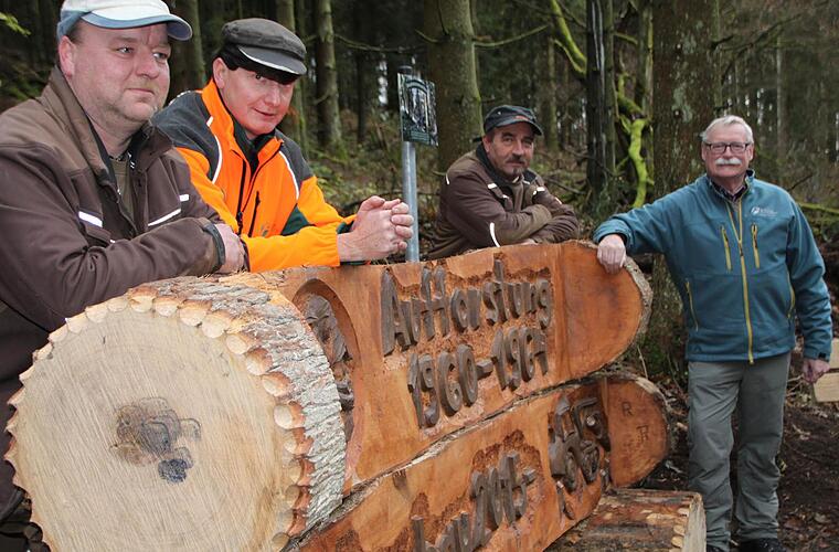 Kreativ zeigten sich die Waldarbeiter bei den Hiebarbeiten rund ums Würzburger Haus. Eine Bank am Kardinal-Döpfner-Weg erzählt die Geschichte des Waldumbaus - und zwar nicht erst seit diesem Jahr. Pate für das Motiv stand die Baumpflanzerin auf der alten 50-Pfennig-Münze - nur dass sie statt eines Eichensetzlings eine Fichte in der Hand hält. Denn in den 1960er Jahren wurde die ertragreiche Fichte systematisch gepflanzt -