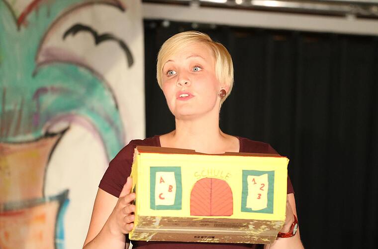 Der Versuch, den Spendenabend irgendwie halbwegs angemessen zu gestalten, entwickelt sich zu einem Basar der eigenen Eitelkeiten. Dass sich trotz großer Egos auch ehrliche Betroffenheit und Emotionen entwickeln, bringt den straff durchorganisierten Spendenmarathon auf der Zielgeraden eher ins Wanken als ans Ziel. Das Ensemble Kompassion, das sich aus ehemaligen Schülern des Gymnasiums zusammensetzt, setzte die bissige Realsatire schwungvoll und fast schon schweißtreibend pulsierend um. Die große Ethik-Keule wurde quer durch die leider nicht ganz voll besetzte Aula geschwungen. Jeder durfte mal mit Anlauf ins Fettnäpfchen stapfen, bisweilen konnte sich kein Aktivist mehr unbeschadet durch das komödiantische Minenfeld bewegen.