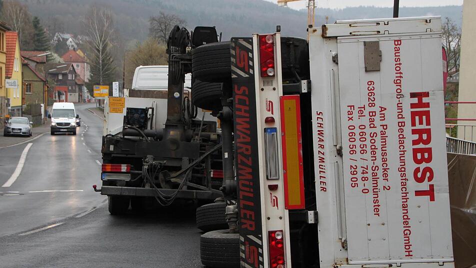 Der Unfall passierte um circa 12.15 Uhr. Die Polizei regelte den Verkehr, der einseitig an der Unfallstelle vorbeigeleitet wurde. "Zum Glück mussten wir die Straße nicht voll sperren", sagt Reinhard Kuklinski, Sachbearbeiter für Verkehr bei der Polizeiinspektion Bad Brückenau. Bis der Anhänger wieder aufgerichtet war, dauerte es mehrere Stunden. Das Verkehrschaos hielt sich in Grenzen.