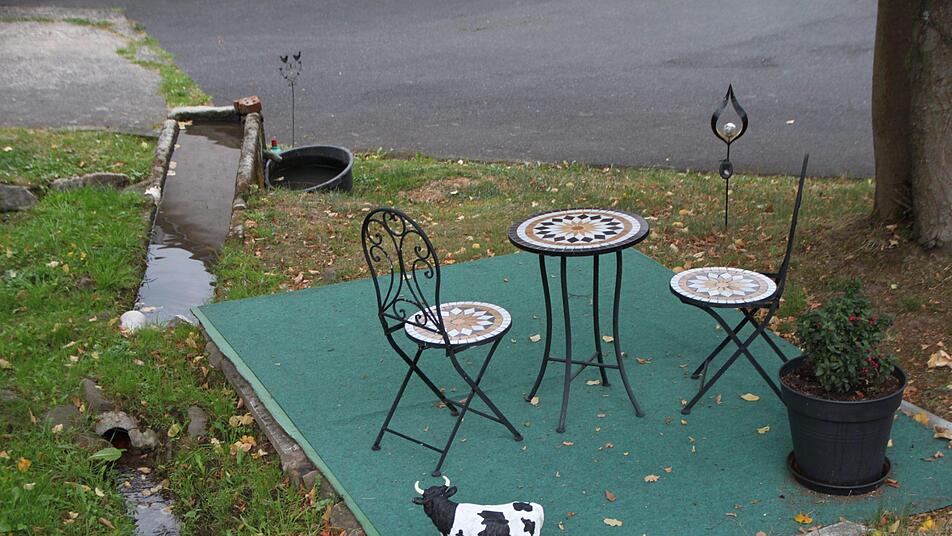 Das nächste Kleinod findet sich am Stockhof. Liebevoll pflegt Annerose Sitte Haus und Hof und lässt die Vorbeifahrenden an der Schönheit teilhaben. Der Rastplatz für Radler bei Riedenberg überzeugt unseren Testfahrer sehr. Er findet gut, dass örtliche Unternehmer für sich Werbung machen. Das wäre doch auch in anderen Orten denkbar, schlägt Duske vor. Ein Hinweis auf die Fußgängerzone in Bad Brückenau sei jedenfalls ein Muss.