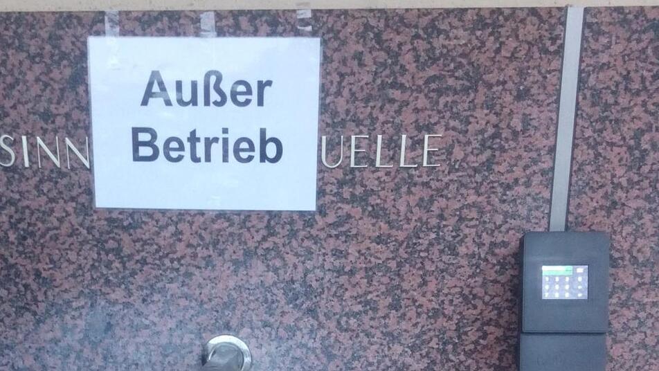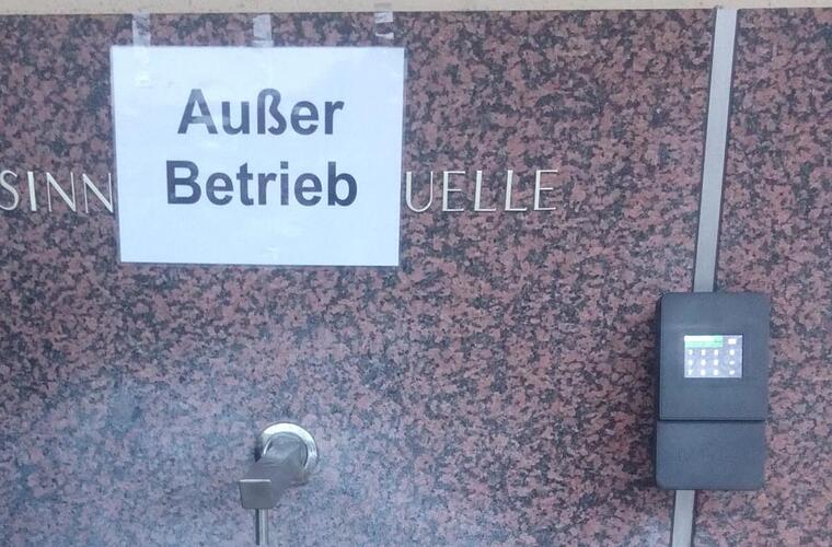 Das Wasser der Sinnberger Quelle gilt als das schmackhafteste der sieben Heilquellen in Bad Brückenau. Doch aktuell ist an der Abfüllanlage im Staatsbad Brückenau ein Hinweis angebracht, dass die Quelle zur Zeit außer Betrieb sei.