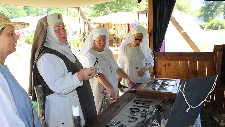 Eines kann beim Bad Brückenauer Stadtfest durchaus passieren: Dass plötzlich ein Kind mit einem Holzschwert ausgerüstet um die Ecke kommt oder eine in mittelalterliche Gewänder gekleidete Familie durch die Fußgängerzone schlendert. Der Mittelaltermarkt im Georgi-Park und das Stadtfest in der Innenstadt funktionieren parallel zueinander. Das Konzept der Veranstalter geht auf.