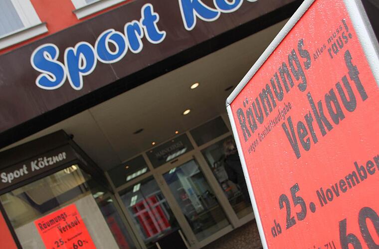 Es ist trüb in der Stadt, Regenschirme wackeln durch die Straßen. Feine Tropfen laufen am Aufsteller herunter, auf dem "Räumungsverkauf" zu lesen ist. Sport Kötzner schließt zum Ende des Jahres. "Wir haben unsere Entscheidung getroffen und gehen offen damit um", sagt Alfred Kötzner, dessen Frau Inhaberin des einzigen Sportfachgeschäfts in der Kurstadt ist. Über die Gründe für die Geschäftsaufgabe möchten sich die beiden nicht öffentlich äußern. Spürbar ist jedoch, dass sie sich die Entscheidung beileibe nicht leicht gemacht haben.