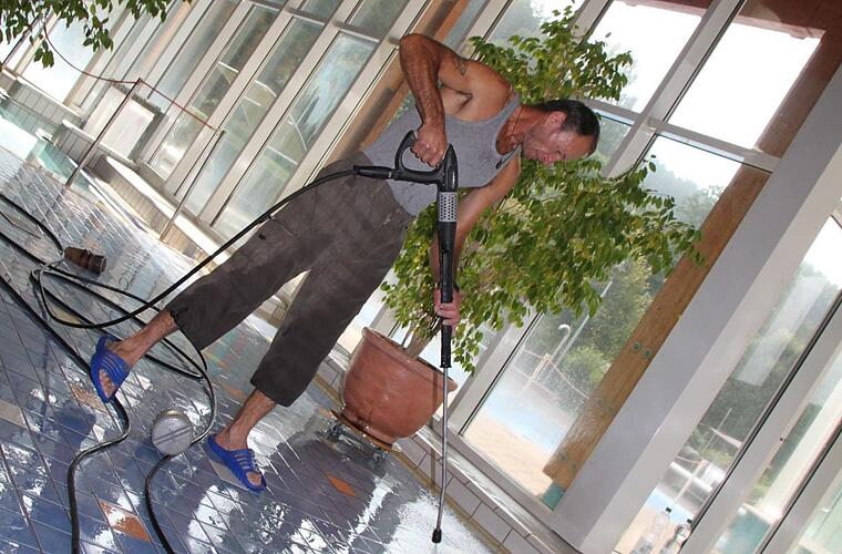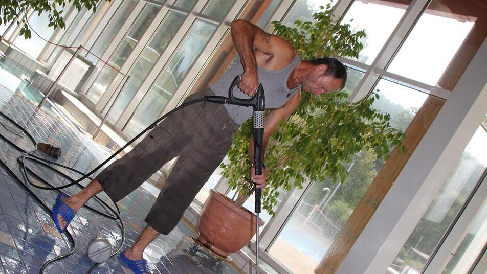 Sie schleifen und spritzen, sägen und hämmern. In der Therme Sinnflut wird gearbeitet. Wie in jedem Jahr pausiert der Badebetrieb nach den Sommerferien, das Bad wird auf Vordermann gebracht. Rund 250.000 Euro investieren die Stadtwerke. Vor allem der Blitzschutz und die Brandschutzanlagen im Technikkeller werden heuer in Angriff genommen. Am Montag öffnet die Therme wieder für Besucher.