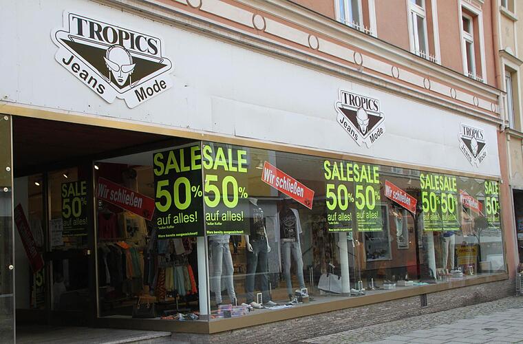 Etwa sechs Wochen dauert nun schon der Ausverkauf in der Filiale des Bekleidungsgeschäfts Tropics in der Ludwigstraße. Wann das Geschäft schließt, kann Geschäftsführer Bernhard Bocks noch nicht sagen. Er sieht wenig Hoffnung für den Standort.