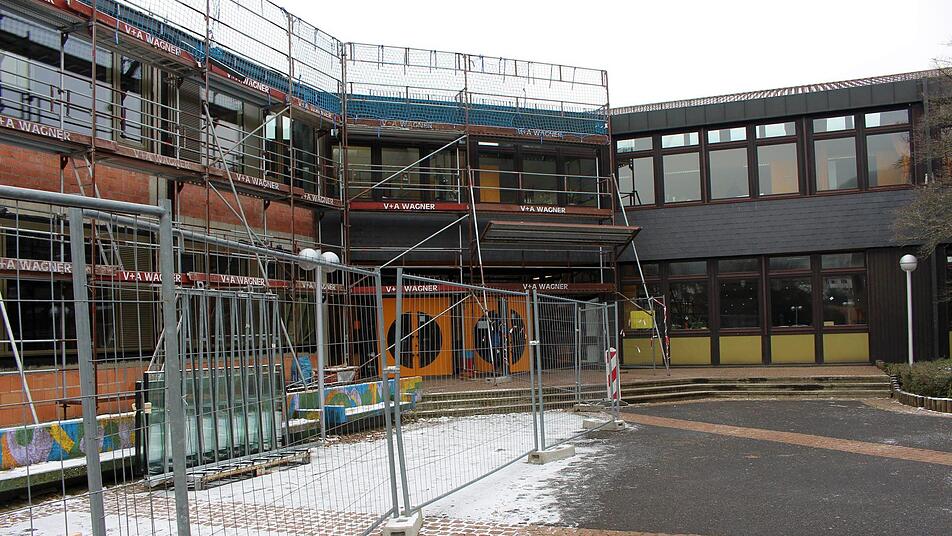 Die Sanierung der Bad Brückenauer Mittelschule ist in vollem Gange. Die Fenster sind schon eingebaut. Im Sommer beginnt plangemäß der zweite Bauabschnitt.