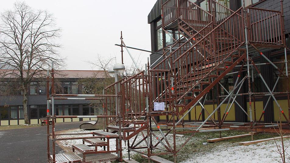 "Bisher läuft alles nach Plan", gibt Bastian Wagner vom Architekturbüro Roth und Partner Auskunft. Die Sanierung ist auf zwei Jahre angesetzt und in zwei Bauabschnitte eingeteilt. "In öffentlichen Gebäuden müssen wir viele Vorschriften berücksichtigen, deshalb haben wir einen zweiten Fluchtweg für die Zeit der Bauarbeiten errichtet". Eine von außen angebaute Treppe führt so vom ersten Stock in den Schulhof. Das große Ziel, Fenster und Dach zu erneuern, ist bereits abgeschlossen. Die Pultdächer sind neu gedeckt und die Flachdächer noch notabgedichtet. Momentan werden die Unterkonstruktionen für die Deckenverkleidungen eingebaut. "Parallel wird an den Pultdachflächen eine Einblasdämmung von innen eingebracht", so Wagner.