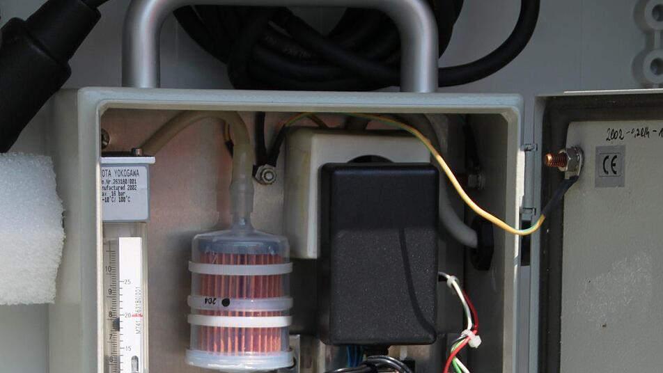 Werner Übelacker vom Bauhof kontrolliert die Stationen wöchentlich. Immer freitags wechselt er Filter, Haftfolie und Röhrchen und schickt die Proben zum Deutschen Wetterdienst. Die Luft im Röhrchen wird auf Stickstoffdioxid untersucht. Mit dem Filter wird die Menge des Feinstaubs gemessen. Die Luft wird eingesaugt, weil Feinstaub zu leicht ist, um sich abzusetzen. Deshalb benötigt die Messstation am Alten Rathausplatz einen Stromanschluss.