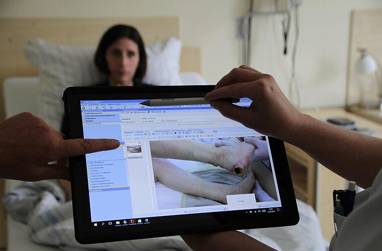 Wie in fast allen Bereichen des Lebens spielt die Digitalisierung auch im Krankenhausalltag eine immer größere Rolle. Aktuell testet die Capio Franz von Prümmer Klinik die "mobile Visite". Im Grunde steckt dahinter nichts anderes als ein fahrbarer Computer, den der Arzt quasi bis vors Bett schieben kann. "Das ermöglicht, dass wir mit dem PC am Patienten sind und alle Informationen zur Verfügung haben", erklärt Verwaltungsdirektorin Sabine Hein.