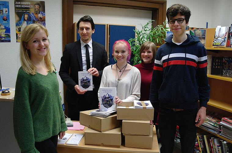 Ab sofort, für jeden frei verfügbar, liegt nun die vom P-Seminar entworfene Broschüre "Jüdisches Leben in Brückenau" vor, die die Schüler in 1000-facher Auflage Bürgermeisterin Brigitte Meyerdierks (CSU) und Bibliothekar Jan Marberg übergeben haben. "Wir unterstützen das gerne," betonte Jan Marberg, ist doch die Bibliothek ein "Wissensspeicher. Wir haben die Aufgabe, Erinnerung und Mahnung zu bewahren." Bürgermeisterin Brigitte Meyerdierks freute sich über das Engagement der Schüler und über den "weiteren Schritt, den wir gehen". Bereits im vergangenen Jahr hatte sie die Gymnasiasten kennengelernt, als diese die Verlegung von Stolpersteinen erneut auf die Tagesordnung des Stadtrates gebracht hatten. War das Thema vor knapp zehn Jahren abgelehnt worden, im vergangenen Jahr konnten die Jugendlichen überzeugen. Auch die Rathauschefin war anfangs "kritisch" zur Stolpersteinverlegung eingestellt gewesen. Doch "muss honoriert werden, wenn sich junge Menschen mit einem Thema so tief beschäftigen. Ich habe zugestimmt, um der Arbeit Respekt zu zollen."