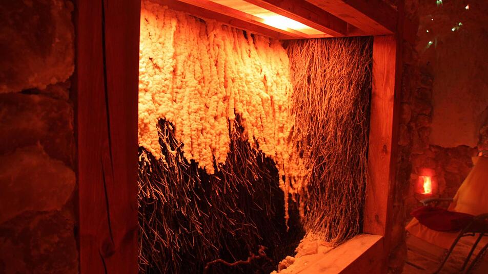 Derweil dämmern die beiden Herren in der Salzgrotte vor sich hin. Ihre Schuhe stecken in weißen Überziehern, damit die Salzkristalle am Boden nicht unnötig verschmutzt werden. "Da kann ich mal richtig abschalten", sagt Neuherz etwas verschlafen von seiner Liege. In der Ecke liegt Spielzeug. "Kinder können nicht so lange still liegen", erklärt Klausch.