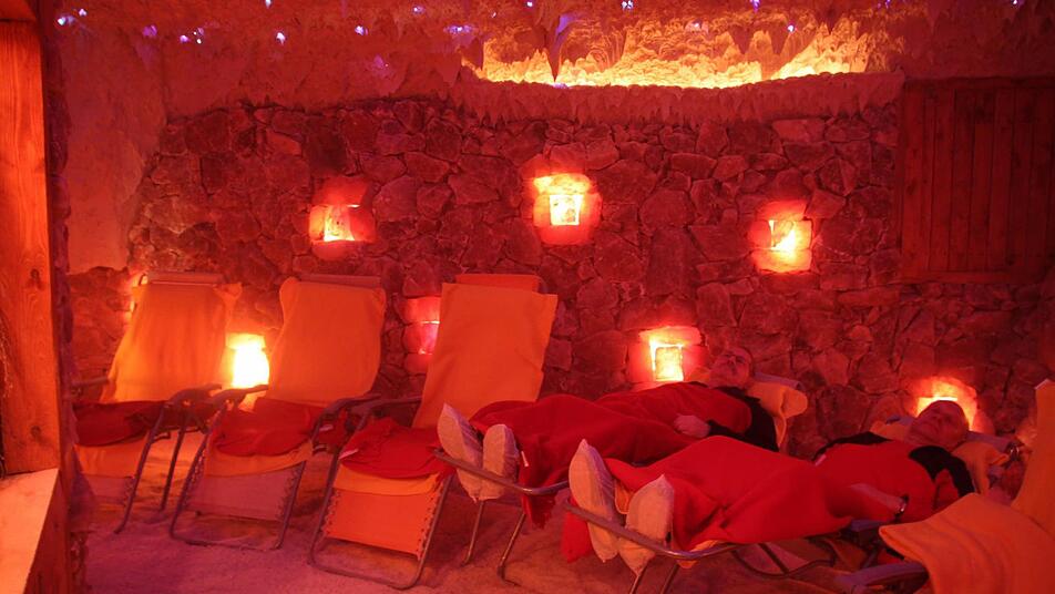 Es ist kühl in der Salzgrotte. Einzelne Tropfen rieseln an der Saline hinab, die in zwei Jahren schon eine feste Schicht Salzkristalle gebildet haben. "Nicht erschrecken!" Mit Schwung kippt Cornelia Klausch zwei Liegen nach hinten. Franz Neuherz und Hans Tänzer atmen tief durch. Die beiden Patienten aus der Klinik Hartwald lassen es sich gut gehen in der Kurstadt.