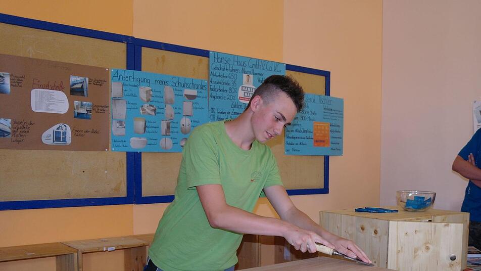 Auf dem "Markt der Lernaufgaben" sahen Schüler und Eltern, was die Achtklässler alles während ihrer Praktika gearbeitet haben. Die Schülerinnen Josefine Herbert und Miriam Schaub mussten bei Friseurbetrieben nicht nur waschen und föhnen, die Haare ihrer Mütter durften sie sogar färben. Einzelne Schüler haben nach ihrem Praktikum sogar schon einen Ausbildungsplatz angeboten bekommen. Justin Berckner präsentierte einen TV-Unterstellschrank als Werkstück, der aufwendig in der Herstellung und tadellos gelungen war. Der 14-Jährige weiß, dass Holz sein Metier ist.