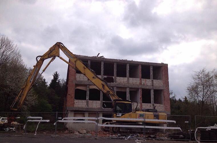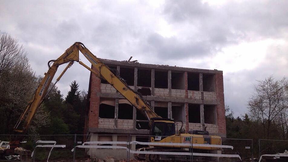 Der Abbruch von ehemaligen Kasernengebäuden bei Oberwildflecken ist seit Tagen in vollem Gange. Auf Beschluss des Marktgemeinderats werden die verwaisten Mannschaftsunterkünfte und Schulungsräume abgerissen, um die Vermarktung im Gewerbepark am Kreuzberg zu erleichtern sowie möglicherweise auch neue Betriebe anzulocken.