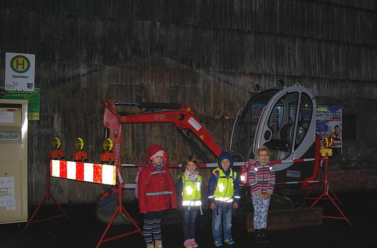 Für ein einheitliches Bild sollen in allen Ortsteilen moderne Wartehäuschen stehen; in Spei cherz wird derzeit das erste in der Gemeinde in Angriff genommen. Die Fundamente wurden bereits gegraben. Bis Mitte Ok tober soll darauf eine Glas-Metall-Konstruktion errichtet werden. Die vier Speicherzer Grundschüler Selina, Mia, Emily und Jayden werden also nicht mehr lange "unbedacht" auf den Bus warten müssen.