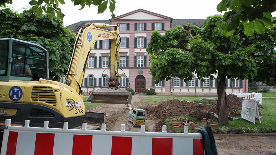 Auch direkt im Park sind Bauarbeiter aktiv. Das unterirdische Leitungsnetz werde verkleinert, erklärt Schallenkammer.