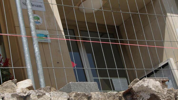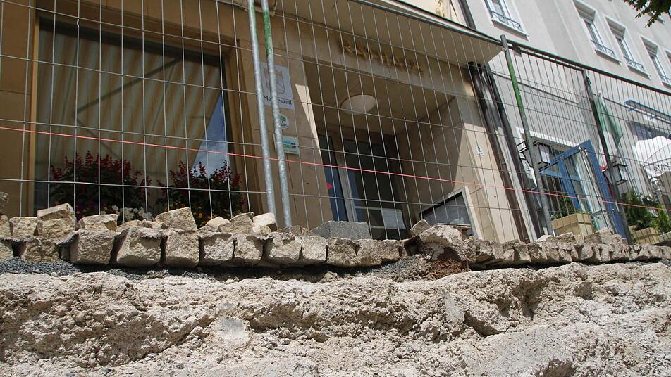 Es brummt in der Stadt. Überall wird gebaut, nur die Baustelle direkt vor dem Rathaus liegt seit einigen Tagen verlassen da. "Die Arbeiten wurden vorläufig gestoppt", berichtete Bürgermeisterin Brigitte Meyerdierks (CSU) dem Stadtrat am Dienstag. Hintergrund sei, dass die Schäden an der Treppe schwerer seien, als zunächst angenommen wurde.