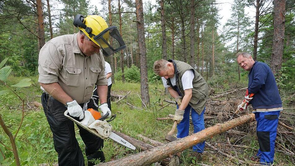 Die Rücknahme des Kiefernwaldes sei mit der Unteren Naturschutzbehörde  abgesprochen, erklärten Steigemann und der zuständige Förster Matthias  Schlund. Herausgenommen werden in diesem Jahr in erster Linie Bäume,  die ohnehin schon geschädigt seien. Die Trockenheit und Hitze des  vorigen Jahres habe nicht nur den Fichten mit dem Borkenkäfer zugesetzt,  sondern auch den Kiefern mit dem Kiefernprachtkäfer. "Die Bäume haben  keine Widerstandskraft mehr. Die Trockenheit macht zunehmend Probleme",  so Schlund. Gut 80 bis 100 Bäume sollen in diesem Jahr während es zweiwöchigen  Arbeitseinsatzes aus dem Wald geholt werden.