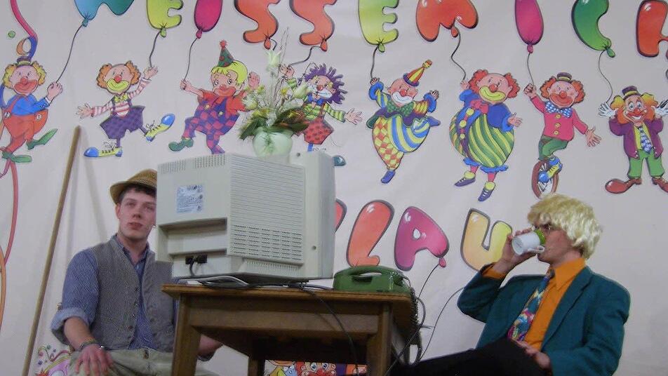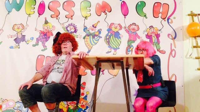 Melanie und Laura Jäger kamen aus der Zukunft zurück zum "Bütteobend" und wussten von einigen interessanten Veränderungen zu berichten. Auf eine ganz besondere Art der Babyerziehung wiesen Mario Gunkel, Frank Schiffler und Wolfgang Seel als Babys hin, die von den Müttern (Sabine Schiffler, Eva Schiffler, Katrin Borek) der Selbsterziehung überlassen wurden.