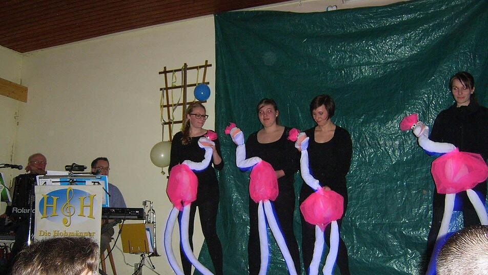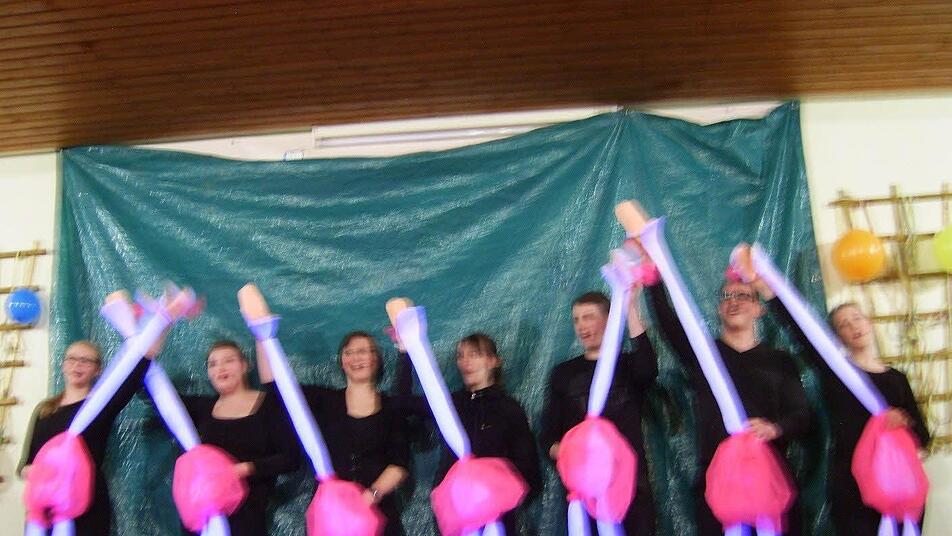 Mit einem Flamingo-Tanz überzeugten Laura Jäger, Luisa Breitenbach, Tamara Hertel, Sophie Müller, David Breitenbach, Dominik Hertel und Steffanie Schiefer.