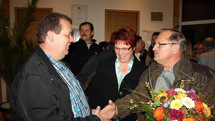 Zahlreiche Gratulanten Zu den Gratulanten im Rathaus zählte auch CSU-Ortsvorsitzender Erwin Belz. "Ich wünsche dir, dass du ehrlich und pflichtbewusst nach vorne gehst", wünschte er dem Parteifreund. Bernold Martins Frau Carola freute sich natürlich auch mit ihrem Mann und stieß gleich mit ihm an. "Das ist ein gutes Ergebnis", sagte sie. Für die Familie werde sich jetzt ja nicht viel ändern: "Wir sind es ja gewöhnt aus den letzten sechs Jahren."
